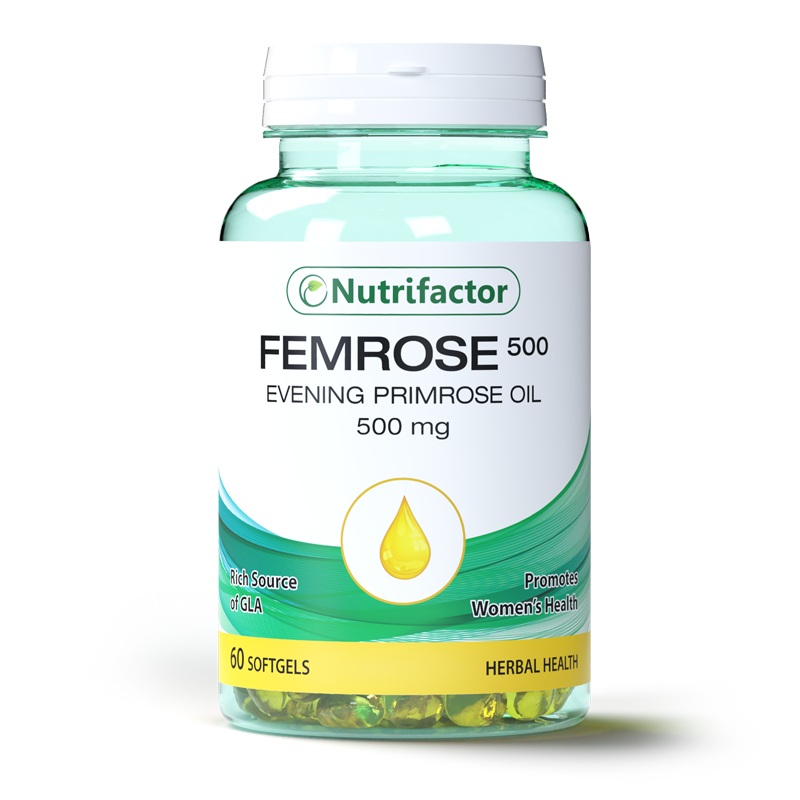 Nutrifactors Femrose 500 is a specialized softgel made with a halal gelatin shell, filled with Evening Primrose Oil. It is a natural and rich source of omega-6 fatty acids, which help reduce PCOS symptoms by regulating hormones. Evening Primrose Oil is eff