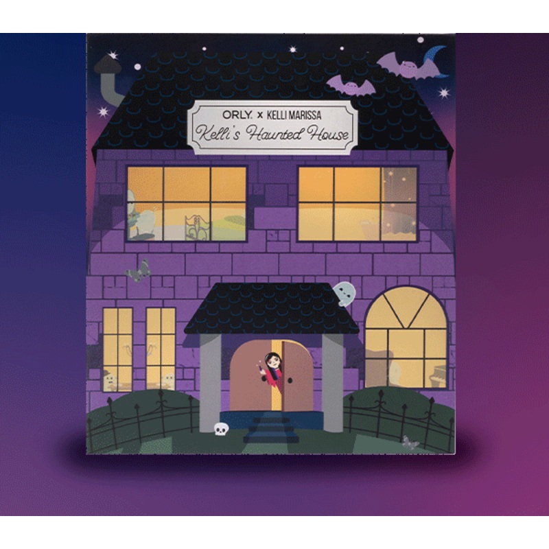 Everyday this spooky season, open a new door of Kellis Haunted House and discover a chilling surprise to ignite your nail art inspiration. With three new full-size colors created by Kelli and five mini of her ORLY favorites with her own twist. Her haunted house features custom decals and tools that will have you creating ghoulishly gorgeous manicures all season long. For the first time ever experience glow in the dark packaging in Kelli’s haunted house.