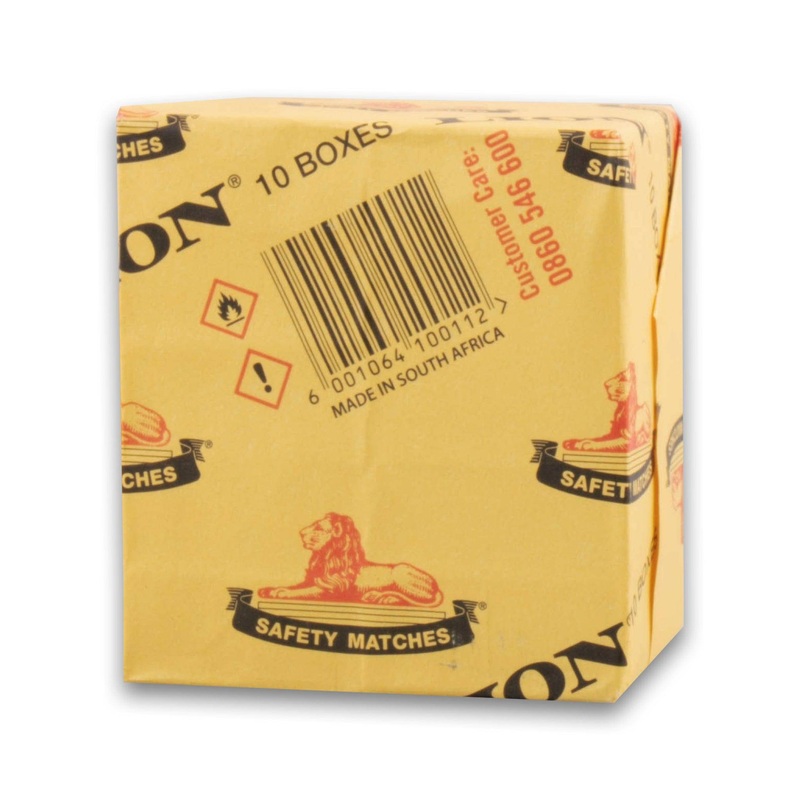 Brand: Lion. Product Type: Safety Matches. Key Ingredients: Wood and sulfur. Volume: 10 boxes. Formulation: Safety matches. Allergies/Warnings: Keep out of reach of children; do not expose to heat or flames.